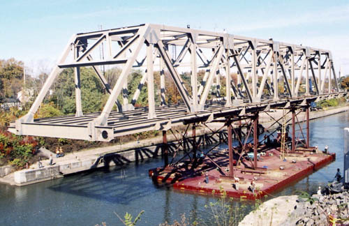 Flexifloat barges and attachments are used to solve the flotation and bridging problems found in marine construction projects.