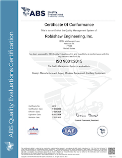 Flexifloat’s quality management system is certified to be in conformance with the requirements set forth by ISO 9001:2015 for the “design, manufacture and supply of modular barges and ancillary equipment”.