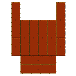 A further adaptation of the principles noted in the U-Configuration. The extended outboard rows of flotation increase the transverse stability characteristics without a requisite increase in overall hull width. “H” shaped assemblies are effective in limited access areas such as lock chambers or narrow canals.