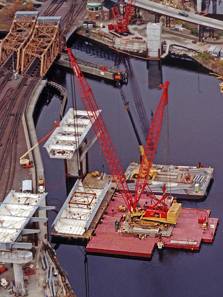 The S-70 Series (Depth: 7.0 ft, Width: 10.0 ft, Length: 20-40 ft) supports over 4.4 million lbs and can be combined in modular configurations with multiple units to meet diverse project needs. It is commonly used in marine construction for the most severe applications including track-mounted, ringer and mobile cranes, large hydraulic excavators, bucket dredges, and deep-well drilling rigs. The S-70 Series is also capable of transporting static loads exceeding 2,000 tons. Additionally, our smaller H-50 and S-50 series are often used in support roles where the higher load capacity of our Series S-70 equipment is required for main platforms.