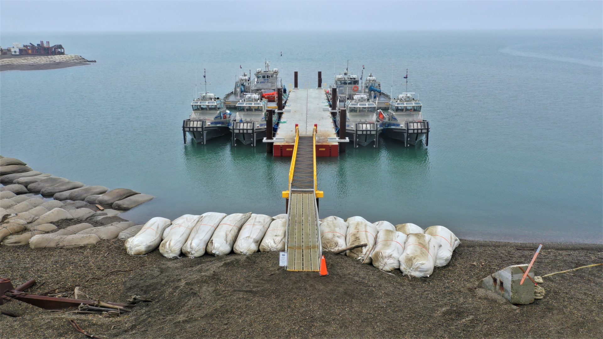 Alaska Frontier Constructors (AFC) supplied Alaska Clean Seas (ACS) with three dock systems for their marine oil spill response operations on the North Slope of Alaska. ACS is an oil spill response consortium which consists of oil and pipeline companies that operate on the northern shores of Alaska adjacent to the Beaufort Sea. The Flexifloat® floating docks provide mooring for 25 to 45-foot workboats used for transport of equipment and personnel, boom deployment and skimming activities.