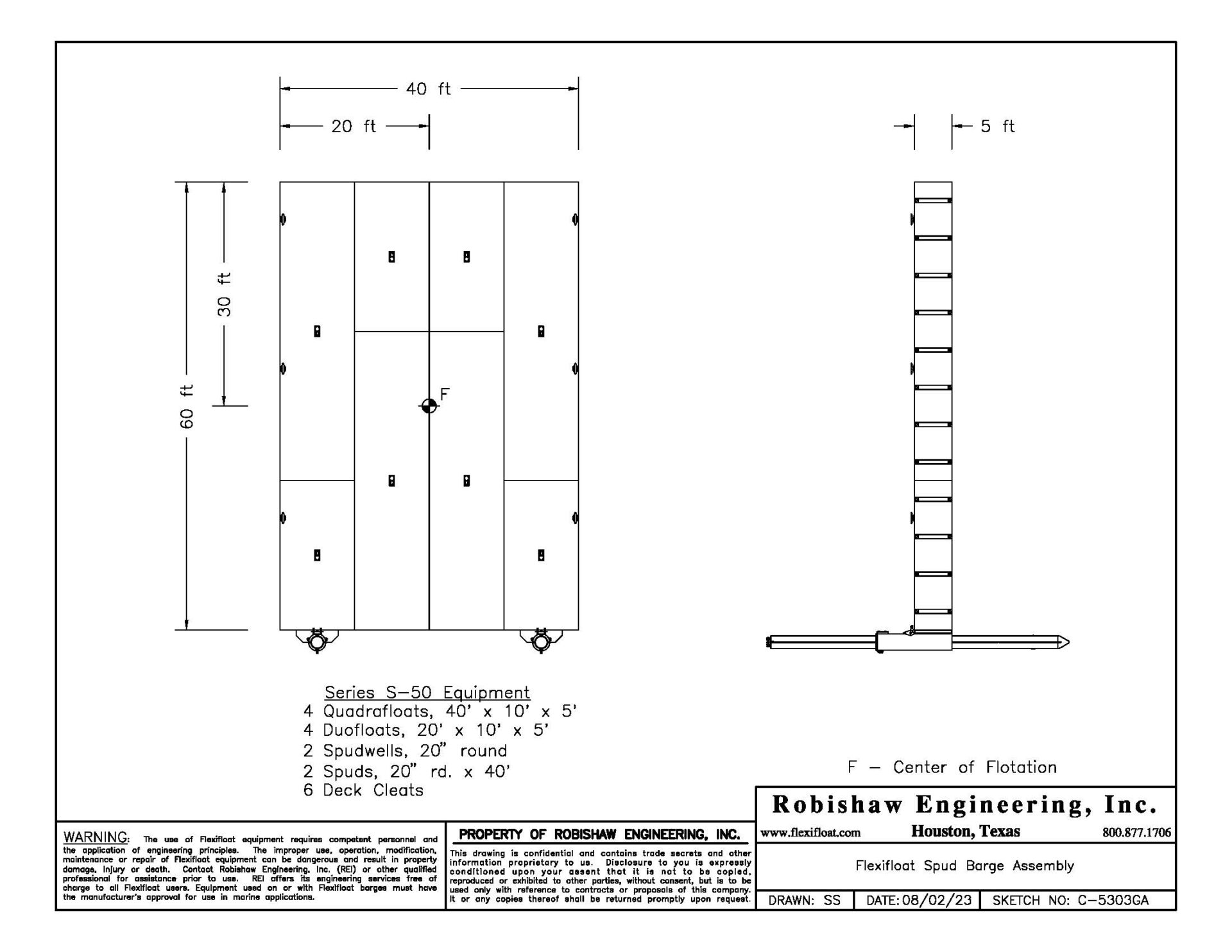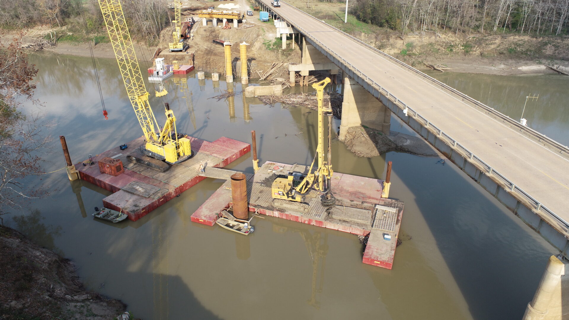 During this job ALH was awarded another bridge project in Central Texas in which they eventually transferred the Flexifloat equipment to tackle their next marine construction challenge. Free of charge, Robishaw engineers supported ALH on both projects with numerous buoyancy and static stability calculations, and barge designs along with recommending marine construction methods.