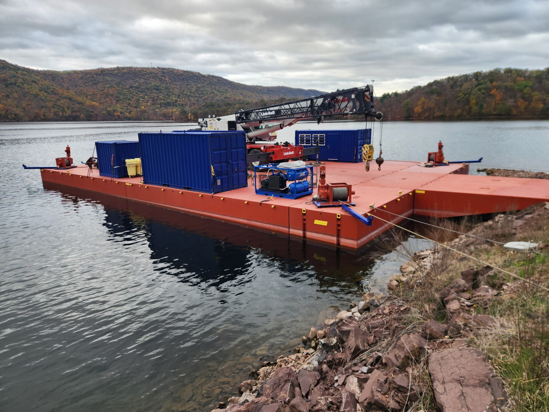 Marine Diving Solutions (MDS) offers commercial diving services and marine construction operations nationwide. Flexifloats have played a crucial role in supporting some of their operations allowing them to accommodate different cranes on various configurations based on the job requirements.