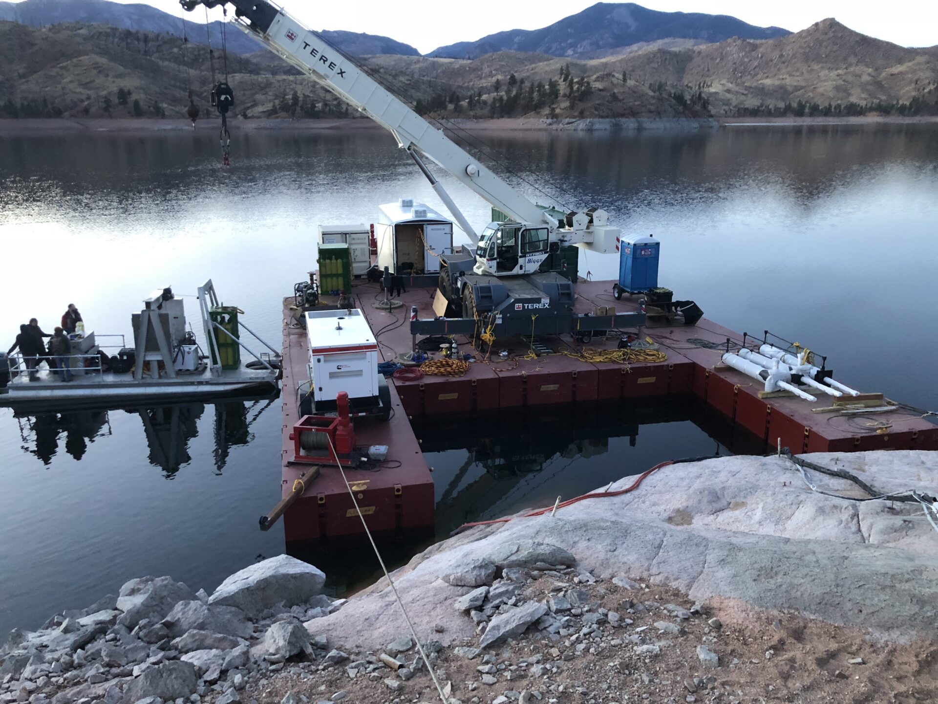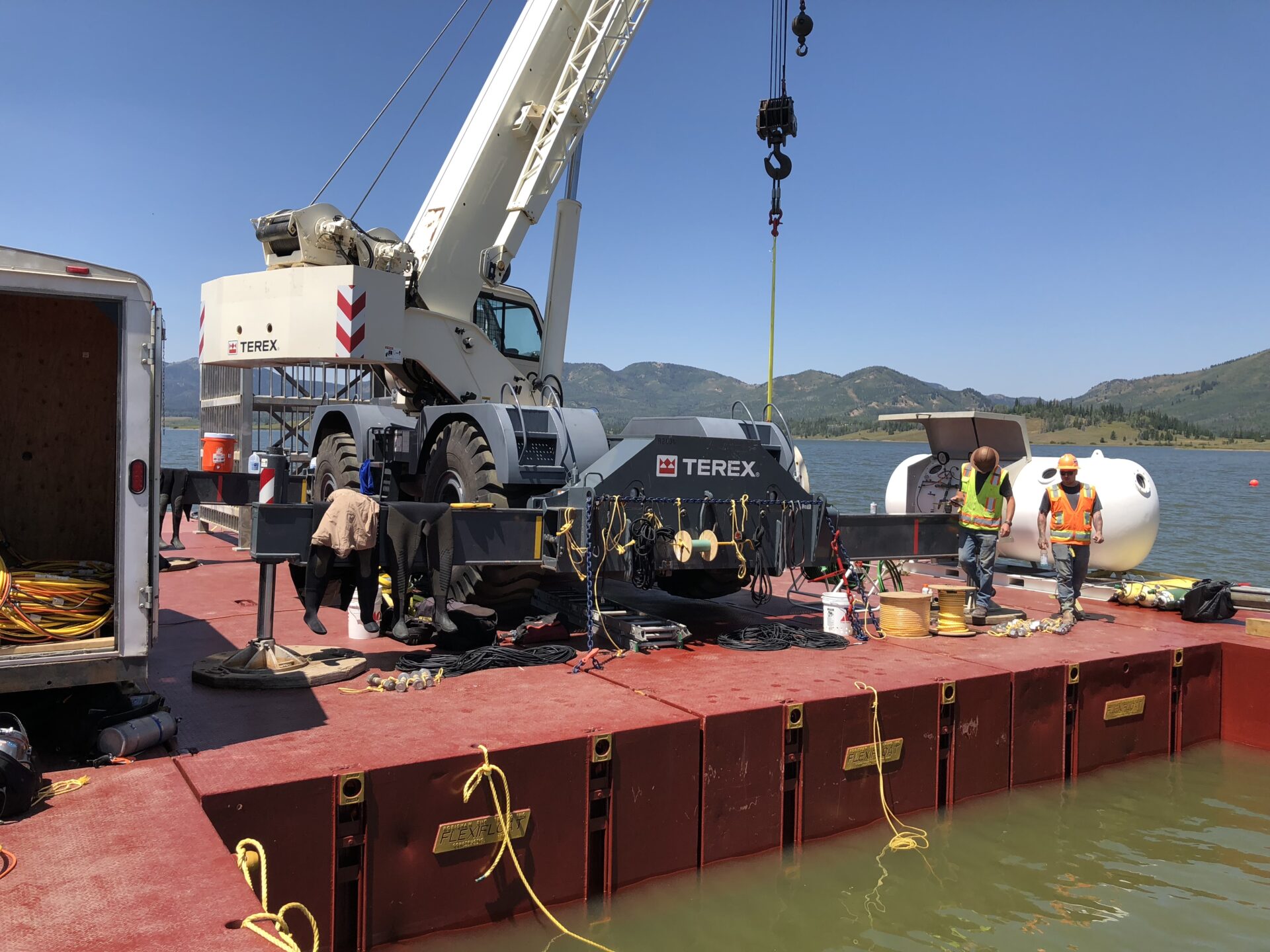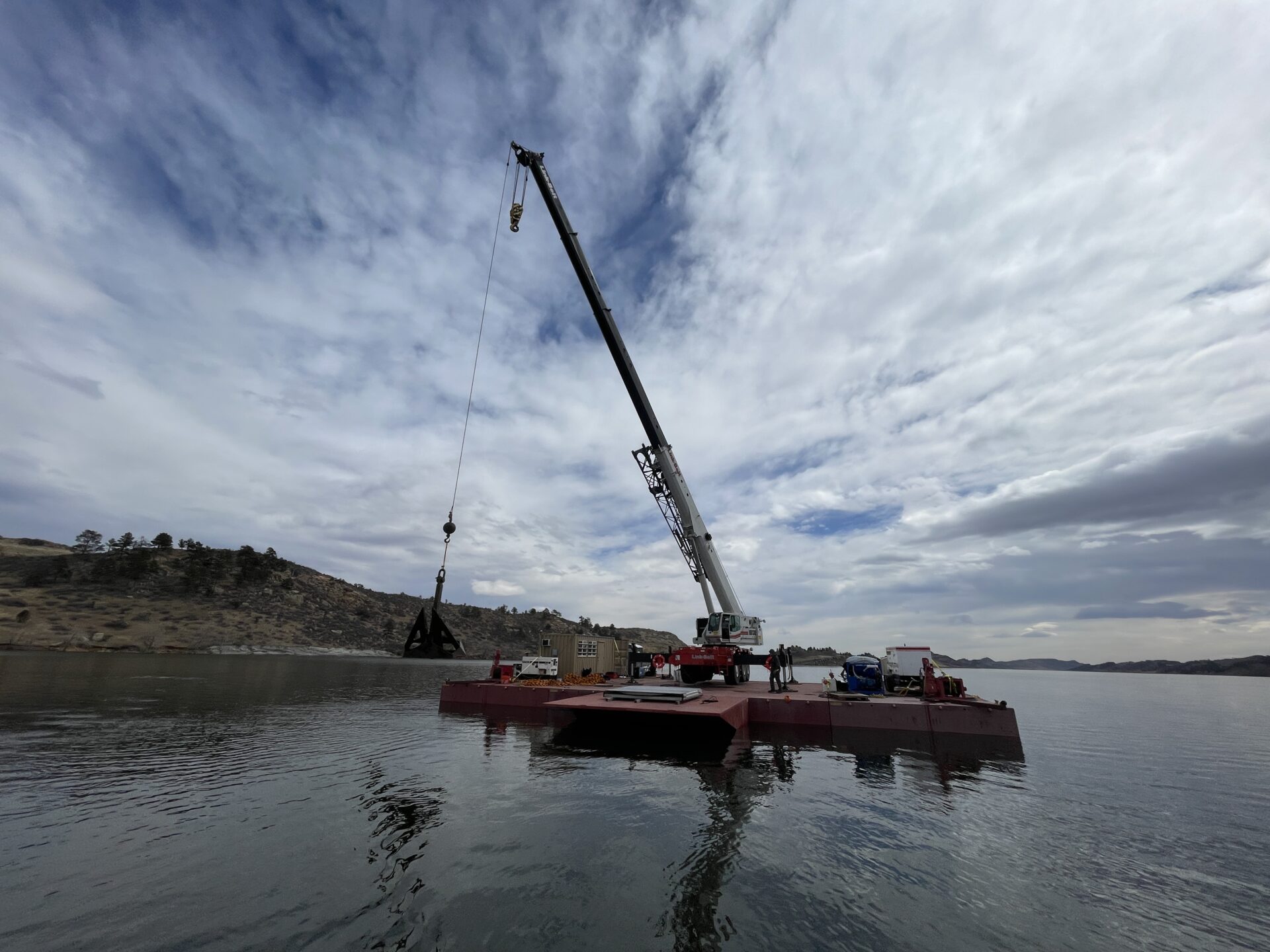 Equipment used on projects includes an 80-ton Grove RT880E crane working on a 70’ x 80’ U-shaped S50 assembly, an 80-ton Terex RT780-1 crane working on a 50’ x 80 U-shaped S50 assembly, and a 130-ton Link-Belt RTC 80100 crane working on an 80’ x 60’ U-shaped S50 assembly. These U-shaped configurations are commonly used when handling hook loads below the waterline, enabling the crane to work in close proximity with the hook load while also supporting dive operations.