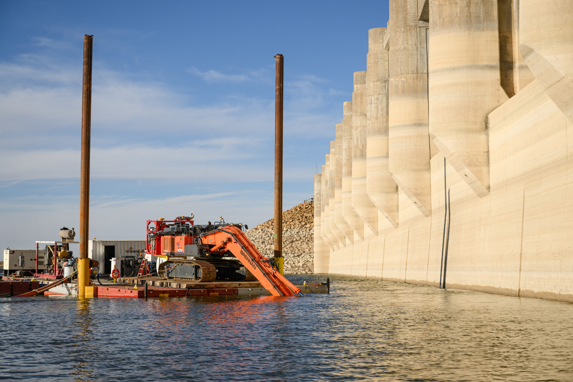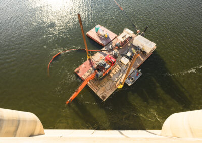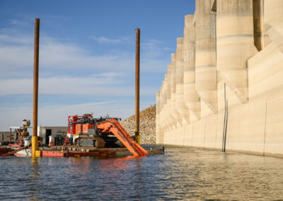After 75 years, a large amount sediment had accreted on the upstream side of the dam. A joint venture between Ahtna and J. F. Brennan was contracted by the U. S. Army Corps of Engineers Albuquerque District to hydraulically dredge the accumulated sediment. In addition, Ahtna-Brennan JV also performed dive operations to remove and replace existing bulkhead seals on the dam.