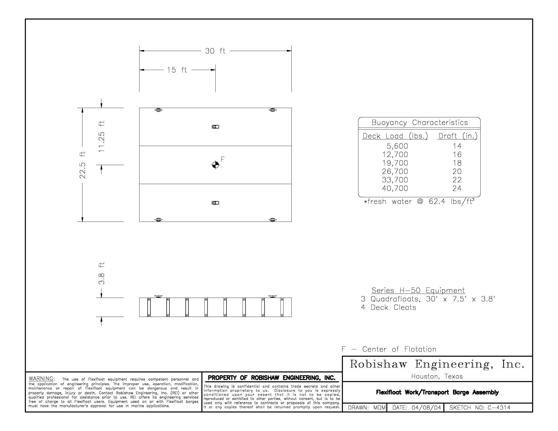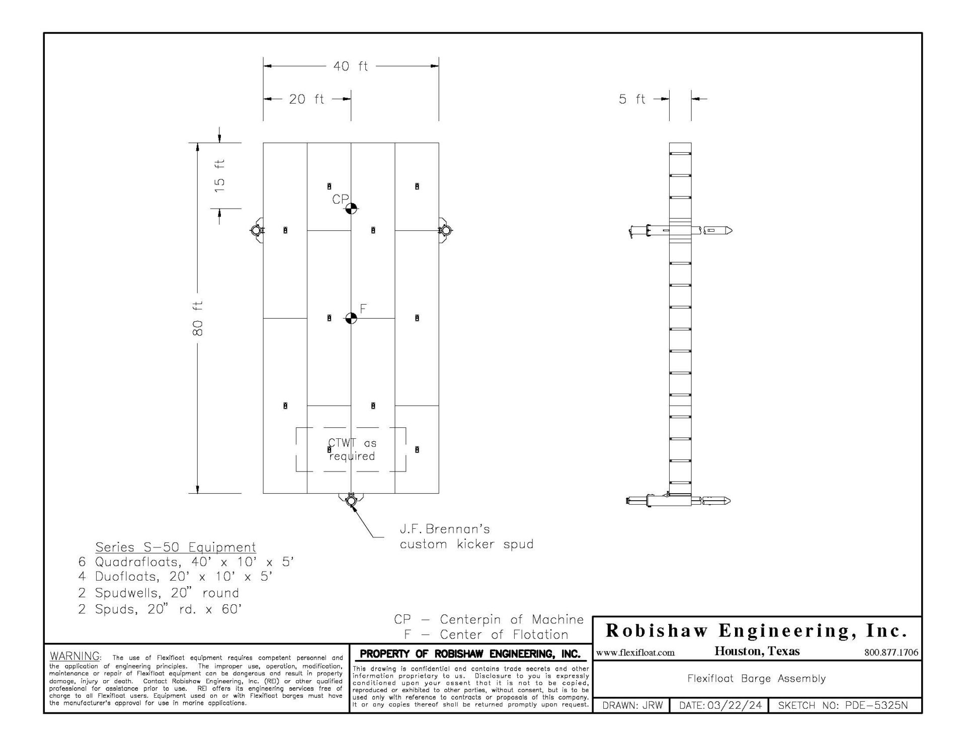 Dredging in up to 50 ft. of water, Ahtna-Brennan JV supported a Hitachi ZX470LC-6 long reach excavator with a hydraulic cutterhead attachment on an 40 ft. x 80 ft. S-50 Flexifloat assembly. The Flexifloat platform was held in position with a pair of 60 ft. spuds along with J. F. Brennan’s custom “kicker” spud on the stern. The S-50 Flexifloat assembly was also used to support the dive operation working on the bulkhead seals. In addition, a 22.5 ft. x 30 ft. H-50 Flexifloat assembly was used as a fuel and support barge.