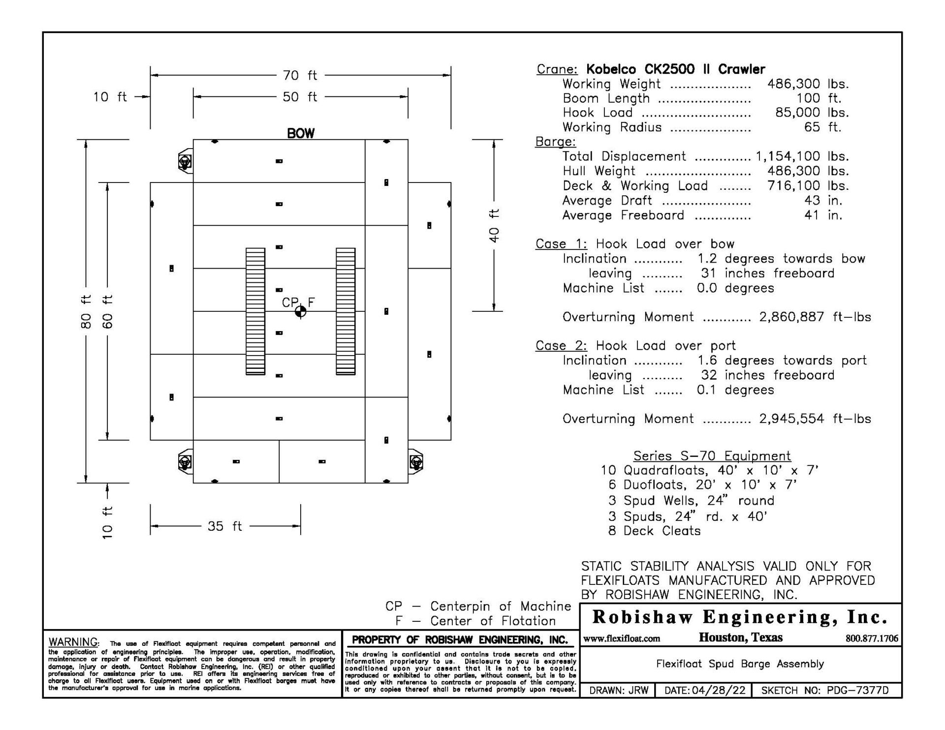 At an estimated cost of $142 million, the TXDOT I-30 Expansion Project will help improve the traffic in the rapidly growing areas of Dallas and Rockwall counties. The project includes the widening of the existing I-30 bridge across Lake Ray Hubbard along with the construction of new frontage road bridges. Working with Robishaw Engineering, SEMA Construction developed a plan to transport the TX70 girders and their tractor-trailers out to the crane barge assemblies. Steamboat Structures developed the lift plan allowing SEMA to utilize a two-crane pick on the Flexifloat floating platforms designed by Robishaw Engineering. The stability analysis performed by Robishaw confirmed that the Kobelco crawlers could perform the lifts working within their rated marine limits. The two Kobelco CK2500 II crawler cranes were lifting girders as long as 139′ and weighing up to 145,000 lbs.