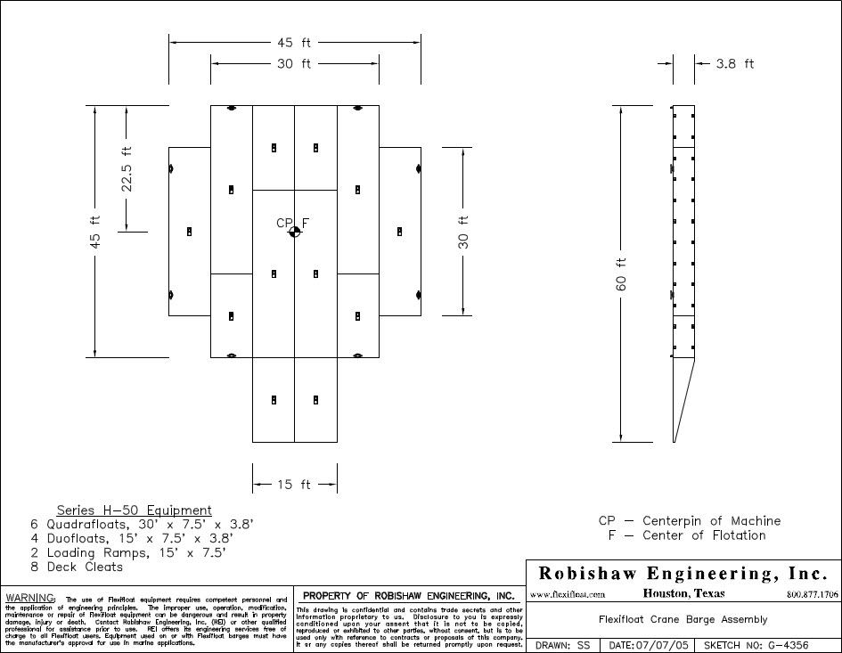 “I want to commend the Robishaw Engineering team for the excellent service they’ve always been happy to provide Underwater Resources (URI) over the past 40 years. Robishaw has often assisted us by providing engineering and technical support for barge configurations, even when we rent barge sections and components from customers who have bought Flexifloat® barges second hand.”