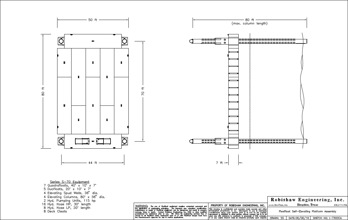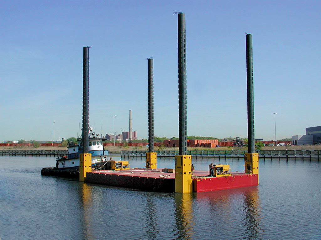 Lomma Construction utilized the Flexifloat® Self-Elevating system to support a Link-Belt LS-218A crawler crane while working on the New York City Parks & Recreation Dept’s Hudson River Esplanade project. The platform allowed them to maintain constant elevation in the tidal river and work from a sloped shoreline.