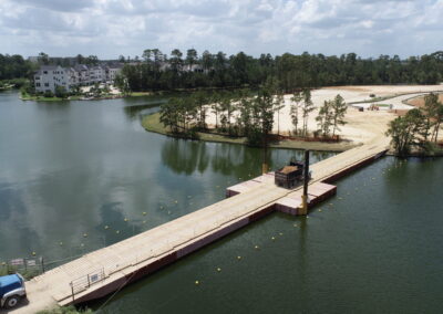 Formerly known as Mitchell Island, Aria Isle at East Shore is an island located on Lake Woodlands that has sat vacant since 1986 but is now slated to accommodate 25 homes sitting on ½ to 1 acre lots.  Underwater Technology Services commissioned Robishaw Engineering to design a temporary floating bridge span for construction access on the north end of the island.  The temporary floating bridge span was needed to allow the high volume of dump trucks and other heavy equipment access to the island without traveling through the residential neighborhood bordering the permanent bridge located on the south end of the island.
