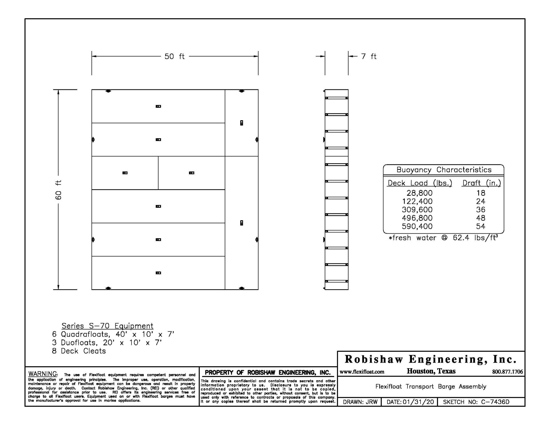 In addition to the crane barges, a variety of material barges were used during the project including a 20’ x 80’ x 7’ and 50’ x 60’ x 7’ assembly.